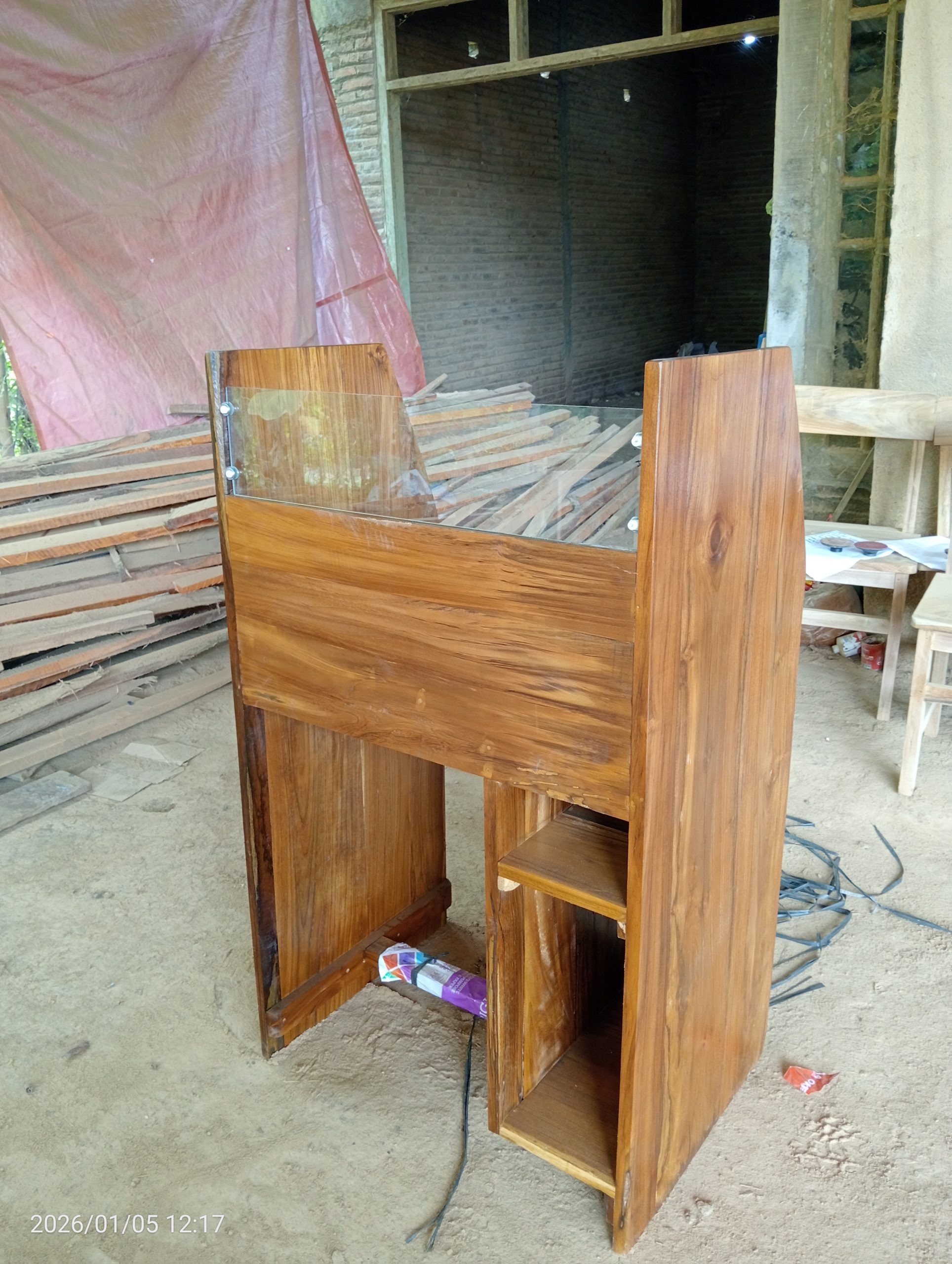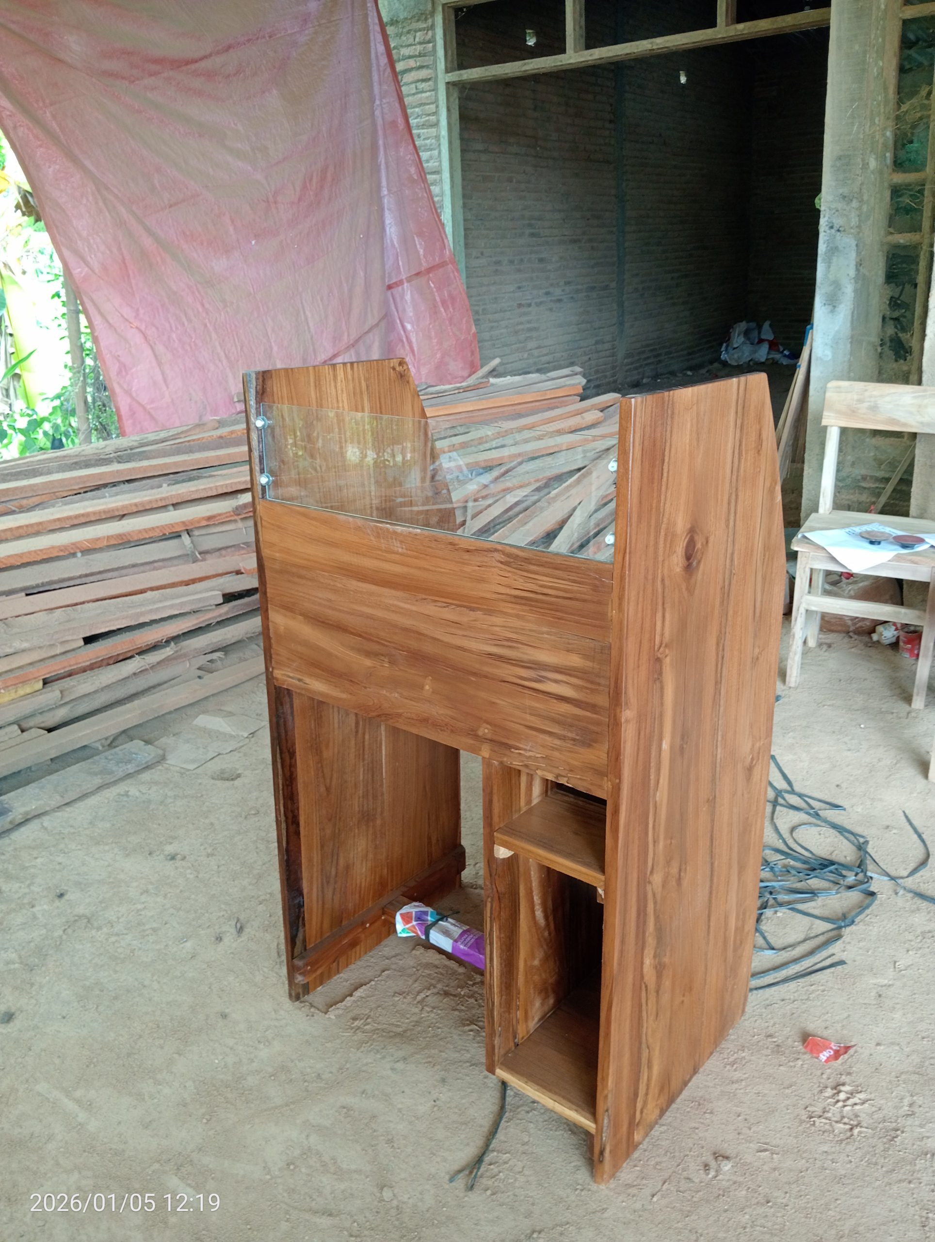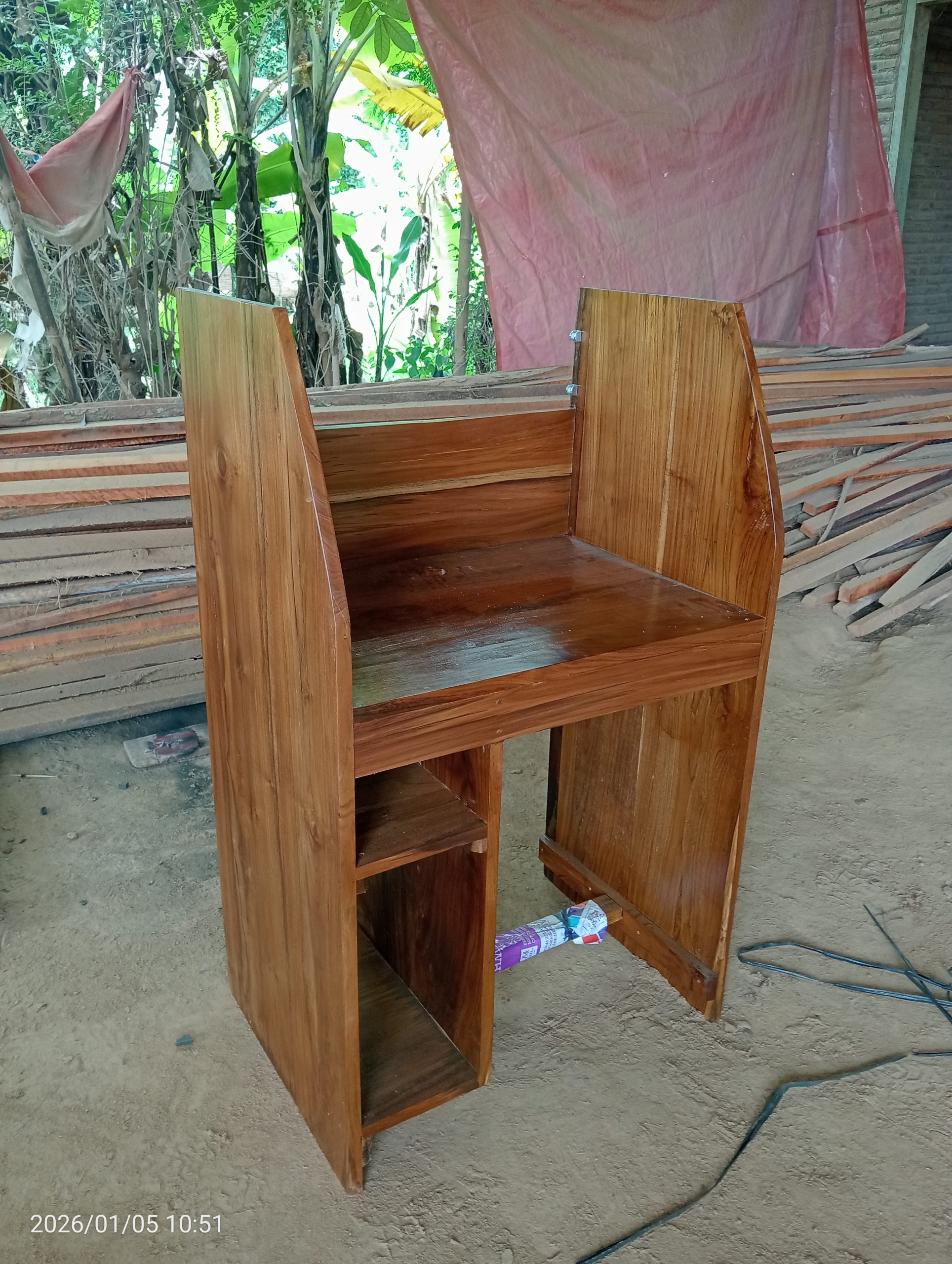 Meja Lab Komputer Single Booth ini Di desain tanpa laci Keybooard  terbuat dari Kayu Jati Solid dengan Finishing Plitur Natural Dengan Packaging standar Meubel , dikirim Menggunakan Jasa ekspedisi. Pembayaran Bisa COD Sekolah atau Instansi